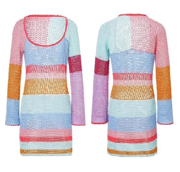FEATURES: Sexy Crochet Knit Dress Long Sleeve, Crew Neck, Colorful, Rainbow Striped, Above Knee Length, Hollow Out. Summer beachwear, Bathing Suit Cover Up Mini Dress. Slim fitting better show show your charming curves and highlight unique fashion sense.