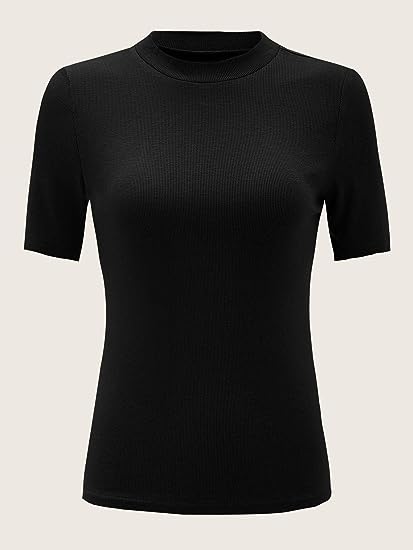 Women's Casual Basic Mock Neck Short Sleeve Rib Knit Tee Top